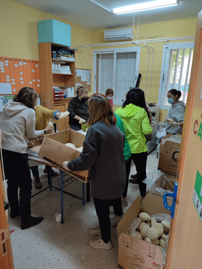 Debido al retraso en la entrega del pan, éste llegó casi a las doce del mediodía, teníamos muy poco tiempo para preparar los bocadillos. Por eso queremos expresar nuestro agradecimiento a las madres que desinteresadamente y sobre la marcha, estuvieron ayudando. A todo el claustro, desde el primero al ultimo, todos arrimamos el hombro y pudimos sacar adelante el desayuno.